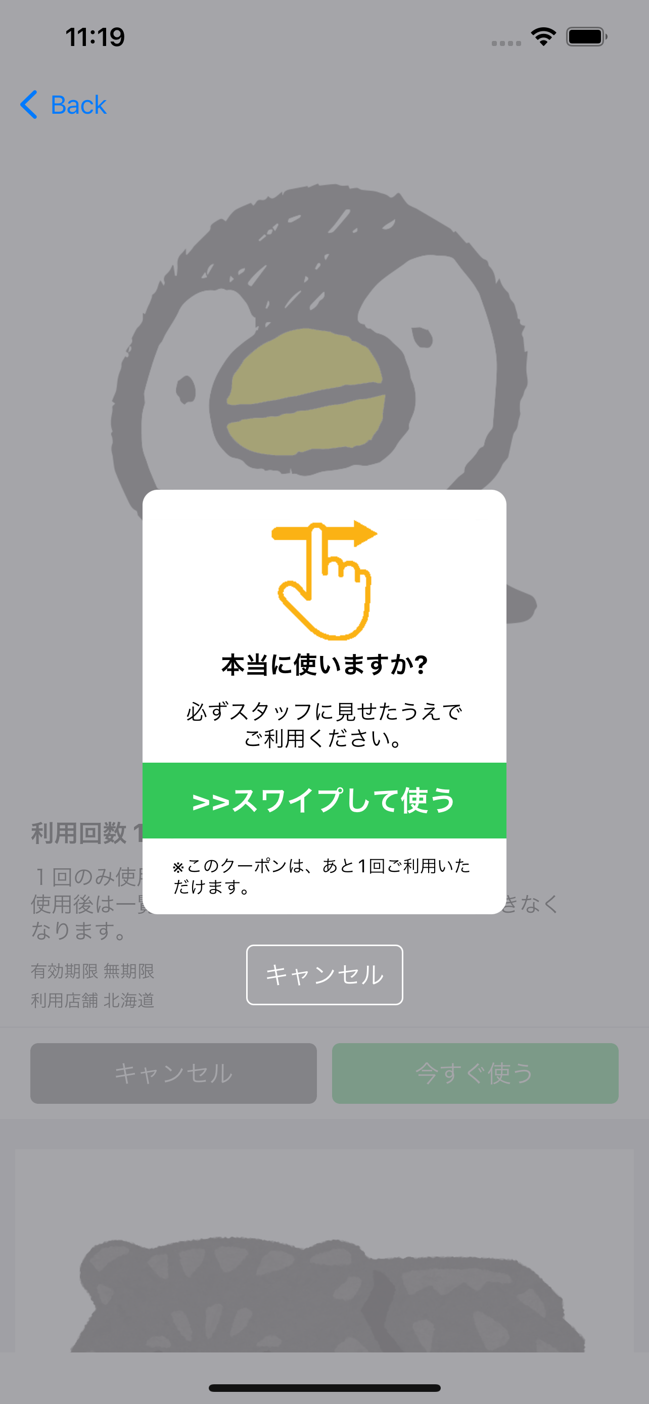 - クーポンの使用(スワイプをして使用)